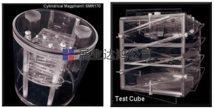 測試立方體:圓柱形和球形的Magphan®使用10cm測試立方體進行圖像質(zhì)量測量。測試立方體由6毫米厚的聚碳酸酯塑料制成,外徑為10厘米。測試立方體包含切片厚度斜面,sensitometry小瓶,高分辨率測試板和一個低對比度盤。
