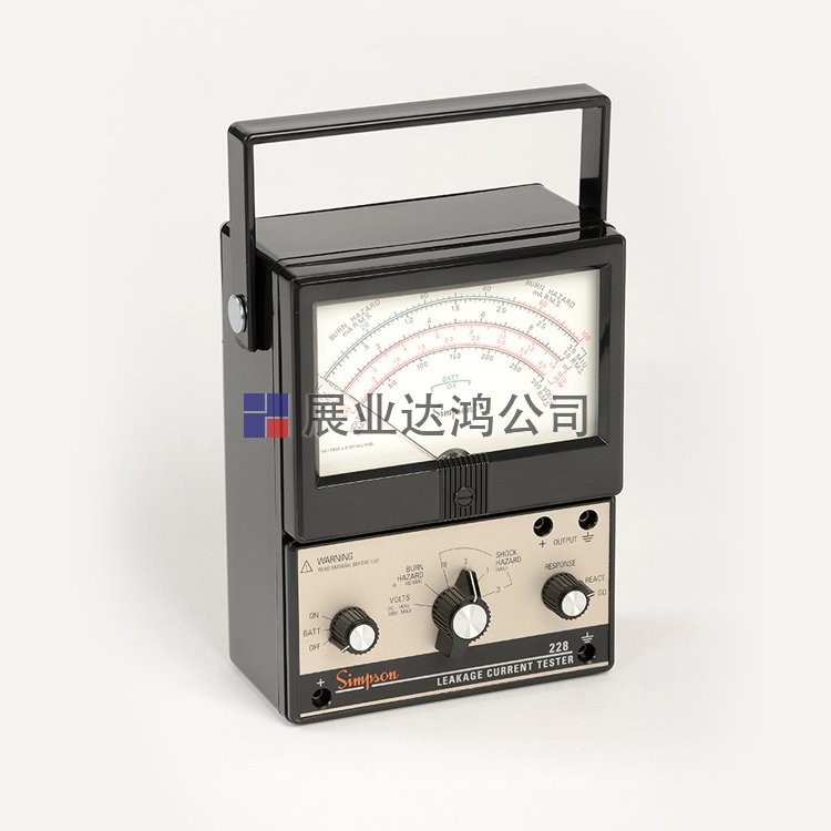 使用符合最新 UL、IEC 和 ANSI 規(guī)范的 Simpson 228 型測試危險泄漏電流。228 可檢測交流和直流泄漏電流,并在三個不同級別模擬人類反應——反應、放開和燒傷危險。每個 228 型都配有帶有鱷魚夾的測試線、手冊和電池。