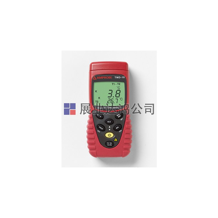 Amprobe TMD-10 雙溫度便攜式溫度計是一款完全便攜的雙輸入溫度計。數(shù)字雙顯示,顯示 T1、T2 和 T1-T2。可選擇攝氏或華氏度測量結(jié)果。存儲并顯示最小值和最大值。使用 K 型或 J 型熱電偶測量溫度。